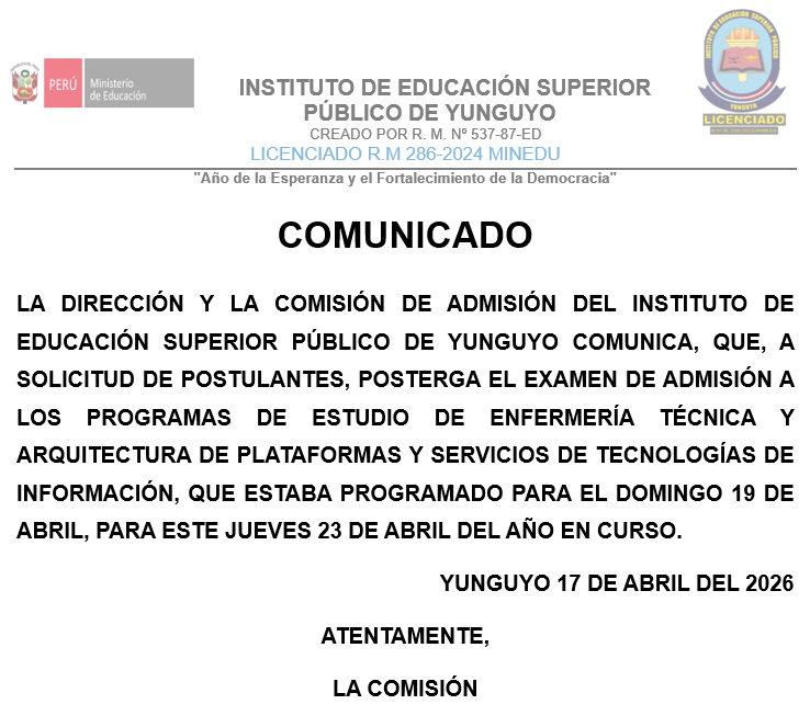 COMUNICADO PROCESO DE ADMISIÓN 2025 DEL IESP DE YUNGUYO