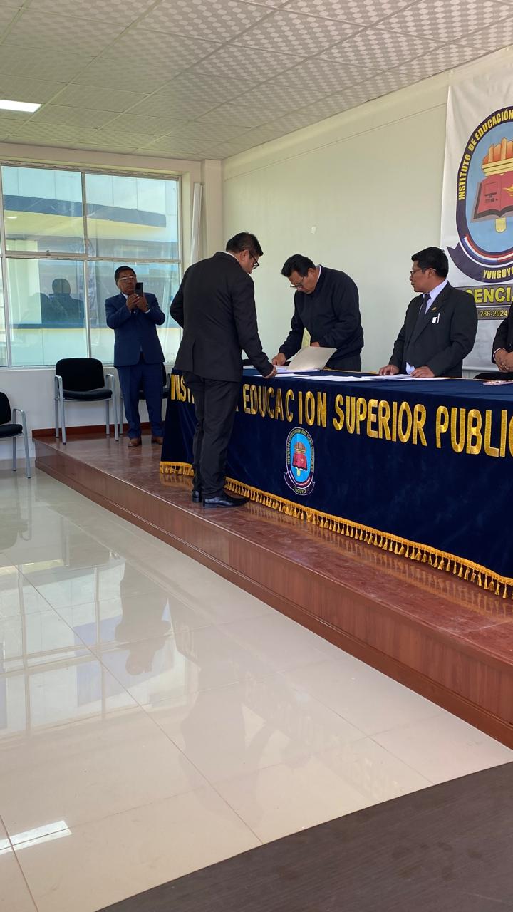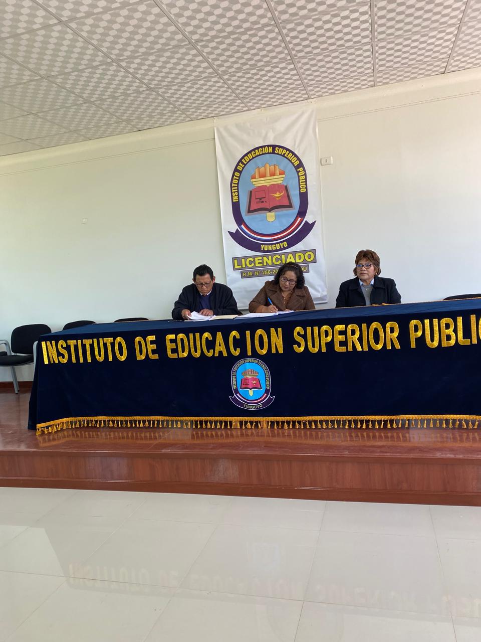 De acuerdo al cronograma regional el dia de hoy el comité de contrato docente 2026 del Instituto de Educación Superior Público de Yunguyo, de acuerdo con lo dispuesto en la RVM N° 226-2020-MINEDU y modificado por RVM N° 134-2023-MINEDU, llevo a cabo la etapa de adjudicación de plazas para los programas de estudio de Enfermería Técnica, Contabilidad y Arquitectura de Plataformas y Servicios de Tecnologías de Información.