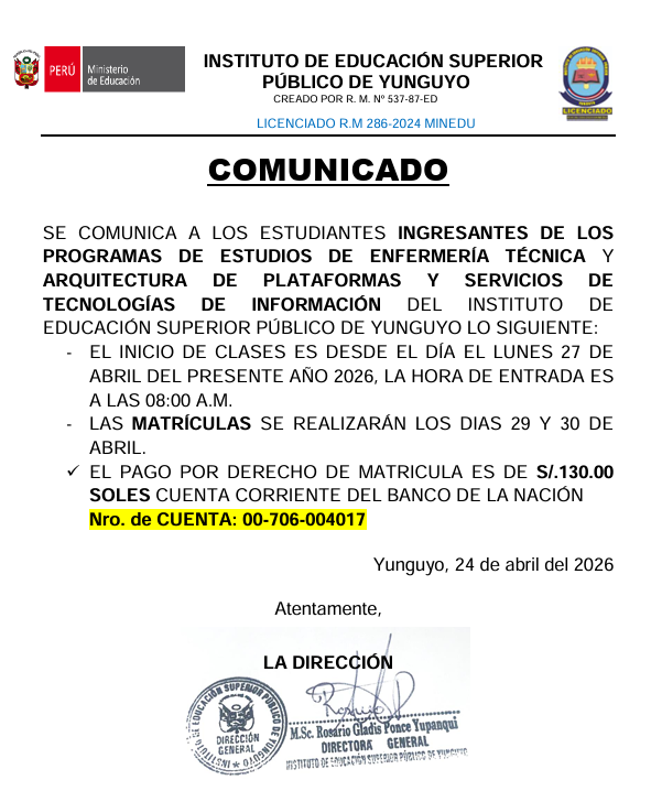 COMUNICADO PROCESO DE ADMISIÓN 2025 DEL IESP DE YUNGUYO